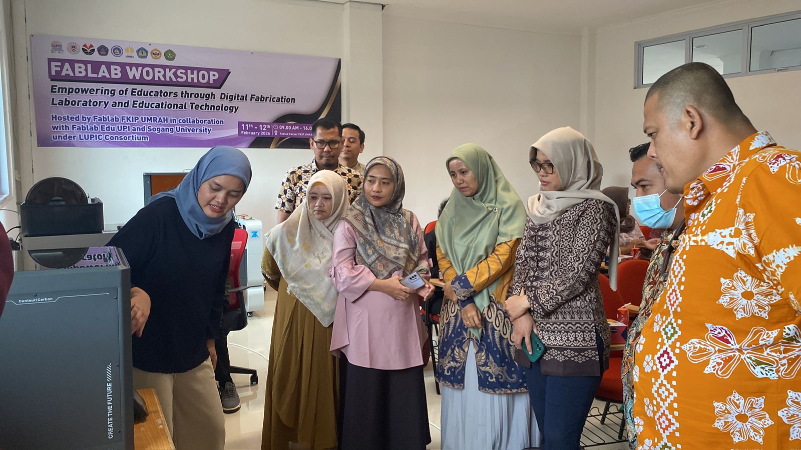 Workshop yang berlangsung pada 11–12 Februari 2026 di Fablab Corner FKIP UMRAH ini menjadi sarana penting dalam meningkatkan kemampuan dosen untuk memanfaatkan teknologi digital fabrication secara optimal sebagai media inovasi pembelajaran di tengah perkembangan era digital dalam dunia pendidikan.